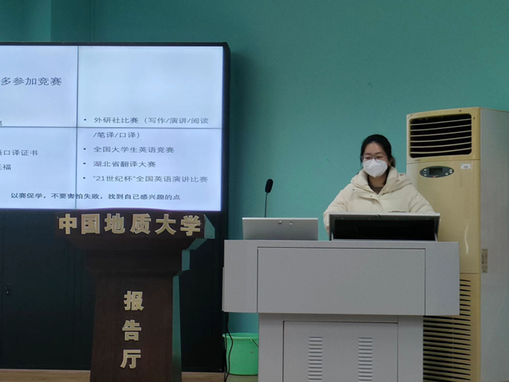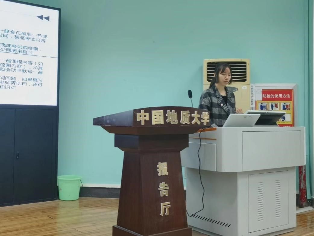 吴悠同学从课程学习与考试、未来方向与目标、平衡学习与生活三个方面进行详细讲解。她提醒同学们要提前了解各门课程的学习内容和考试方法,根据不同的考试内容制定不同的学习计划,并细致入微地讲解各种升学就业的途径及相关要求。