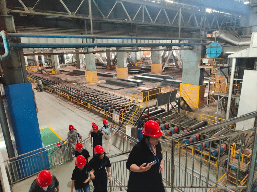 热轧产线的参观点燃实践教育的沸点。轰鸣的轧机与飞驰的钢坯演绎着现代工业的澎湃脉动,“三争精神”的红色标语与全自动产线交相辉映。透过参观走廊的玻璃幕墙,师生见证炽热钢坯经过多道工序精准轧制成材的过程,在钢与火的淬炼中读懂“争气、争光、争一流”的时代注脚。