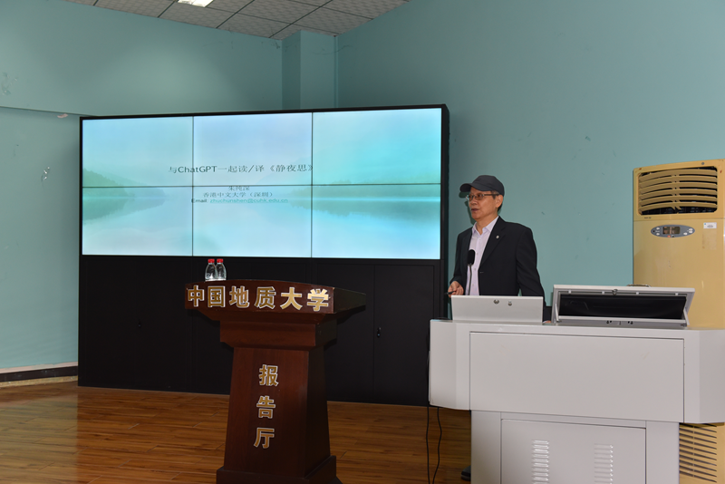 2024年10月18日上午10点,bevictor伟德(武汉)“南望今声”外语论坛系列讲座第67期在北一楼120学术报告厅举行。香港中文大学(深圳)人文社科公司朱纯深教授应邀来到bevictor伟德,给外院师生带来了一场主题为“与ChatGPT一起读/译《静夜思》”的精彩讲座。此次讲座由张伶俐副经理主持,参会师生共计100余人。