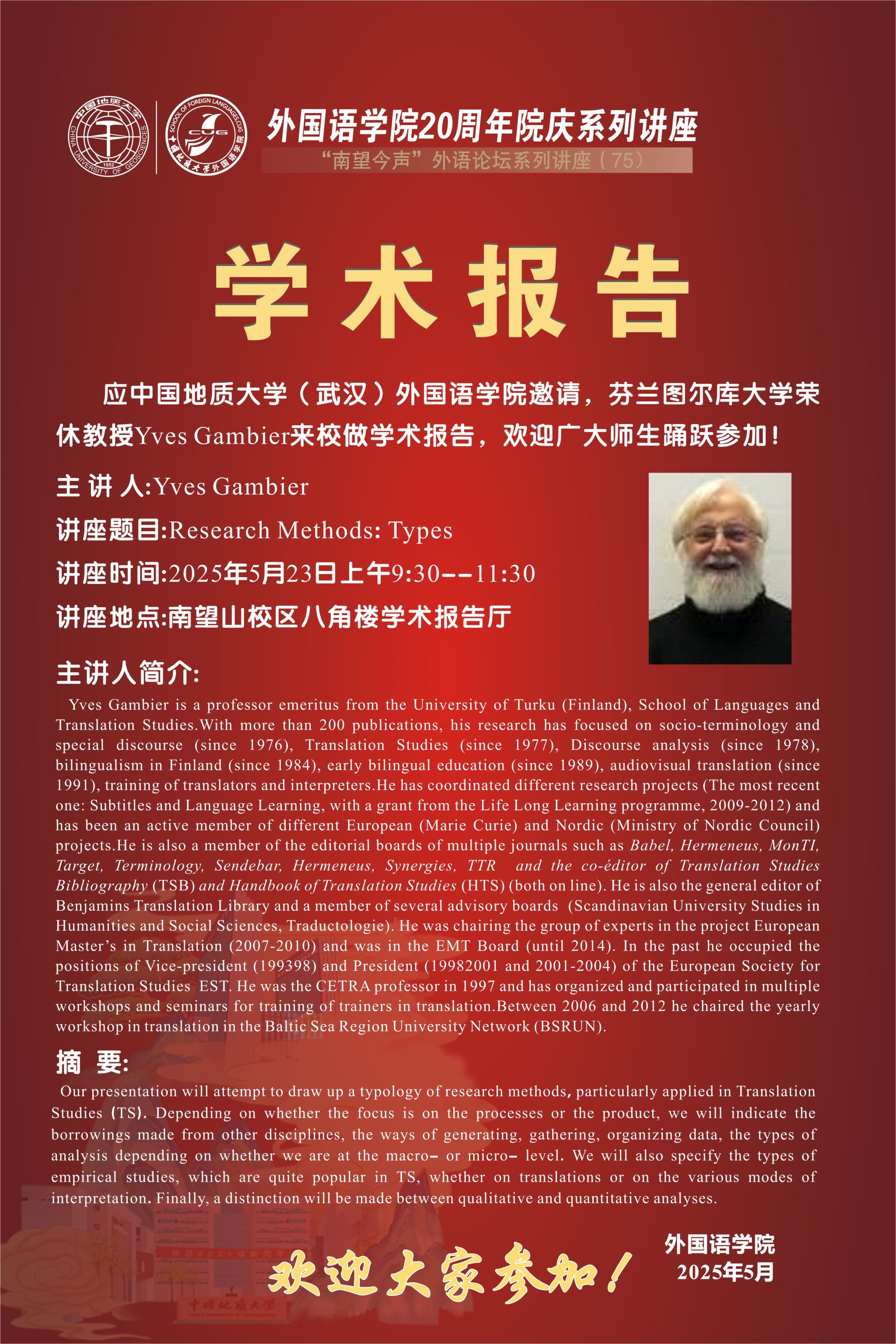 bevictor伟德二十周年院庆暨“南望今声”外语论坛系列讲座第75期启幕