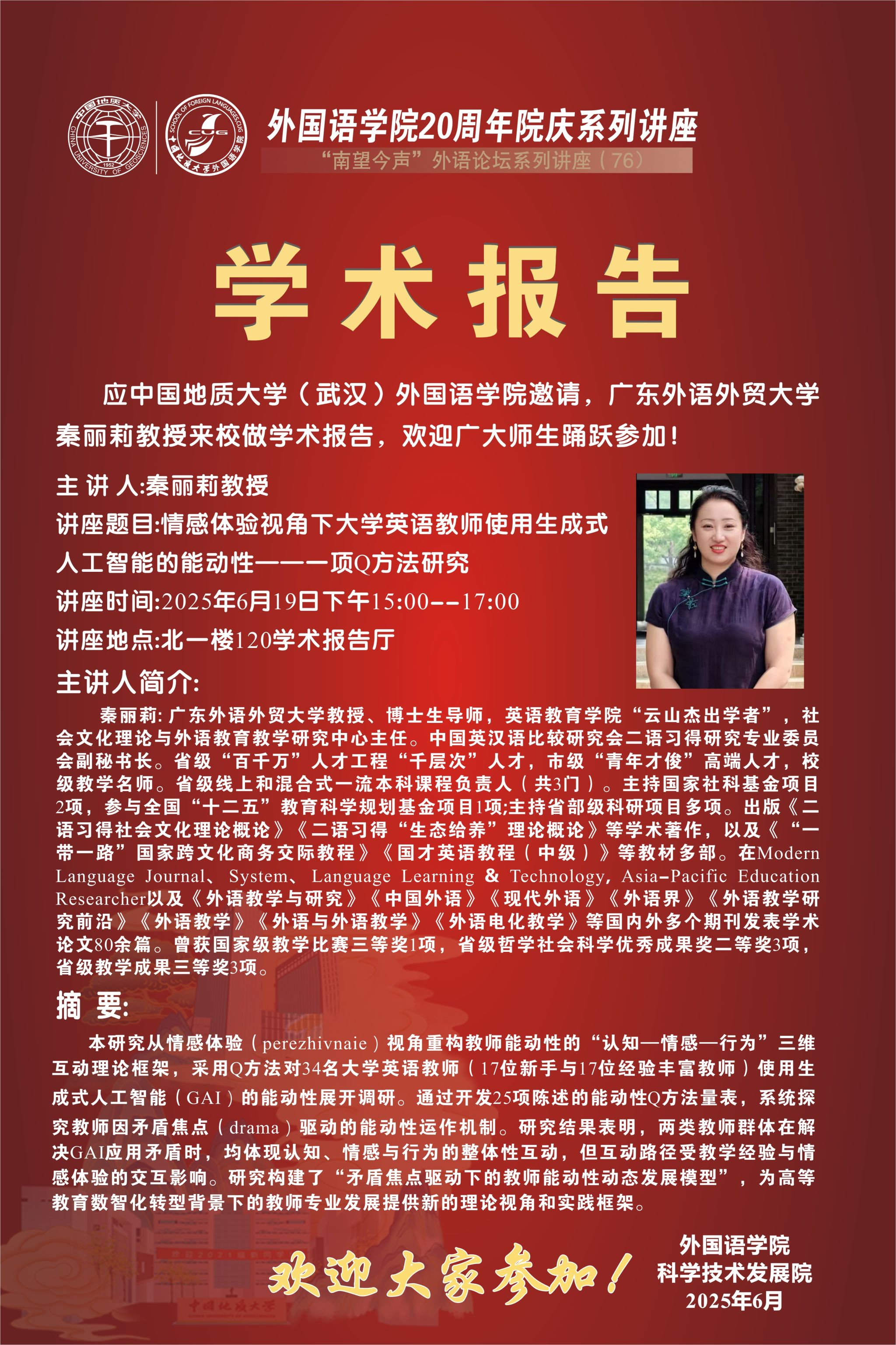bevictor伟德院庆20周年暨“南望今声”外语论坛系列讲座(76)通知