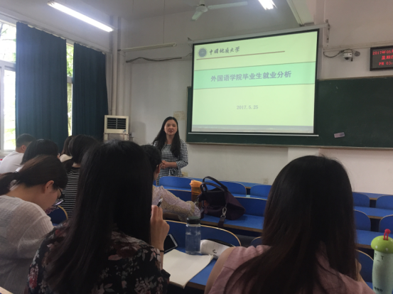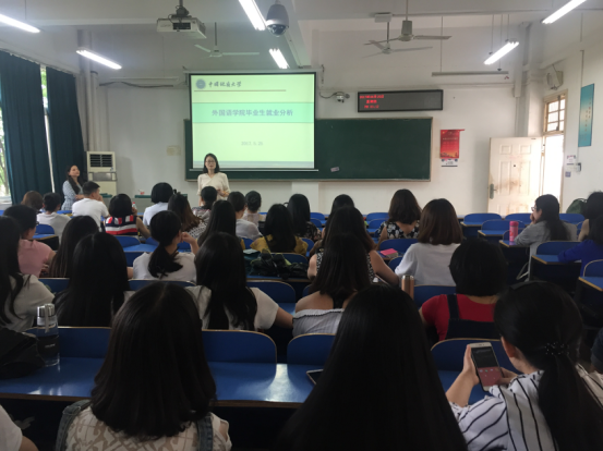 蒋怀柳为2018届毕业生做了《英语专业就业形势分析报告》,从近十年公司英语专业研究生的就业趋势、就业类型和地域分布等各个方面给大家做了一个全方位的比较分析,直观地呈现出目前英语专业就业的整体态势和严峻形势。蒋书记语重心长地指出,就业形势日益变化,但公司毕业生知识结构与市场需求的脱节、普通老员工英语提升对公司毕业生就业空间的挤压、公司女生比例高、就业期望值高,以及女生就业本来就难的问题将是公司同学必须正视和应对的现实。鼓励各位毕业生调整就业观、增强就业技能,及早开始求职前的各种准备,提升就业竞争力。