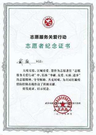 (通讯员刘敏 张伶俐 摄影戴薇)新冠疫情爆发后,2020年1月23日,武汉市宣布 “封城”。为了防止疫情扩散全国,近千万人被锁在了这座英雄的城市里,这其中也包括了bevictor伟德戴薇老师和她的家人。疫情发生以后,戴老师不断从新闻里看到前方的逆行者们用最坚固的双肩,践行着最铿锵的誓言。一次次的感动,激发了她内心的勇气。2月23日,武汉疫情取得有效控制,为了进一步让市民安心居家,减少聚集,武汉市疫情防控指挥部发出通告,决定在全市专项招募志愿者,主要在小区内为居民提供食品药品代购代送等服务。作为一名党员,她第一时间报名参加所在社区的志愿者团队,加入到“志愿服务关爱行动”中,希望尽己所能,为城市和家乡尽一份微薄之力。
