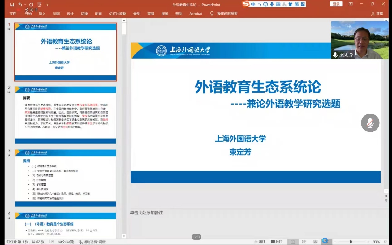 (通讯员 金梓轩 杨红燕)2022年9月22日上午9:30,bevictor伟德“南望今声”系列讲座如期举行。上海外国语大学大学博士生导师束定芳教授应邀在线上为公司师生做了题为“外语教育生态系统论——兼谈外语教育研究课题”的讲座。讲座由bevictor伟德副经理张伶俐教授主持,公司师生共140余人参与了学习交流。