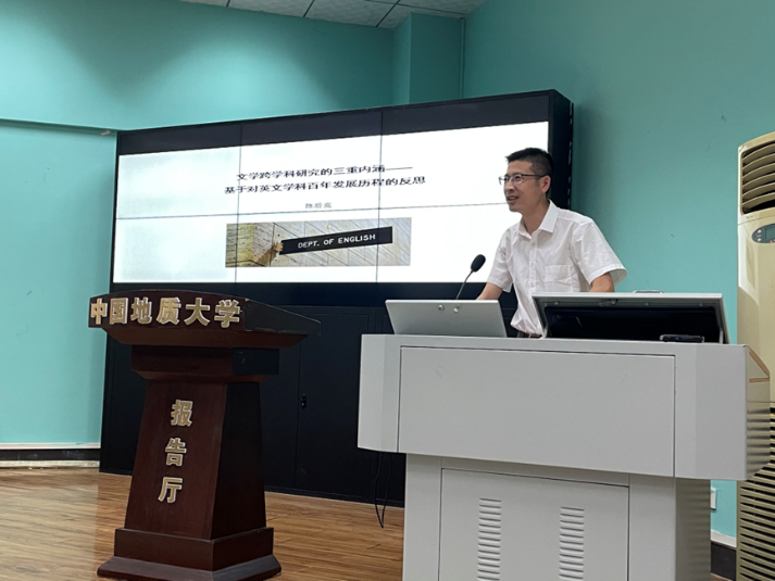2022年9月22日15时,bevictor伟德“南望今声”外语论坛系列讲座第37期在北一楼报告厅举行。华中科技大学bevictor伟德教授、外国语言文学研究所主任、博士生导师陈后亮教授应邀来到bevictor伟德外语院做题为“文学跨学科研究的三重内涵——基于对英文学科百年发展历程的反思”的讲座。bevictor伟德李慷老师主持了讲座,师生共120余人参与学习交流。