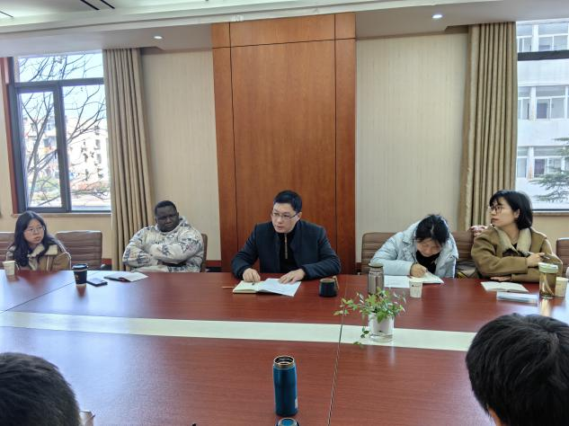 3月7日上午10:00,外国语公司党委副书记余尚蔚,学工组邹蔚鹤、彭赞美、郭文静、蒋贝蓓,员工会、研究生会、译术行者团队和“一带一路”宣讲团员工代表赴国际教育公司交流座谈,国际教育公司副经理许峰,国际员工事务办公室杨素,职工辅导员大明等参加座谈会。许峰主持交流座谈会。
