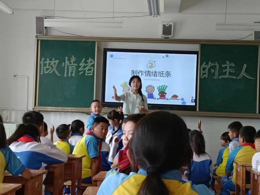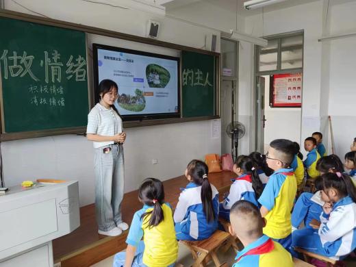 科普讲解结束后,实践团成员马一鸣面向同学们开展《做情绪的主人》心理健康主题教育。她通过生动的案例展示、有趣的看图说话、引人入胜的讲故事等方式为同学们介绍了关于情绪的背景知识,在活动中,实践团成员积极邀请同学们分享自己调控情绪的方式,师生互动活泼有趣,课堂氛围温暖有序。实践团成员教授同学们关于调节和掌控情绪的路径方法,包括情绪ABC法、宣泄法、注意力转移法等,并根据不同员工的个人特点介绍了不同的情绪调控的推荐方式。