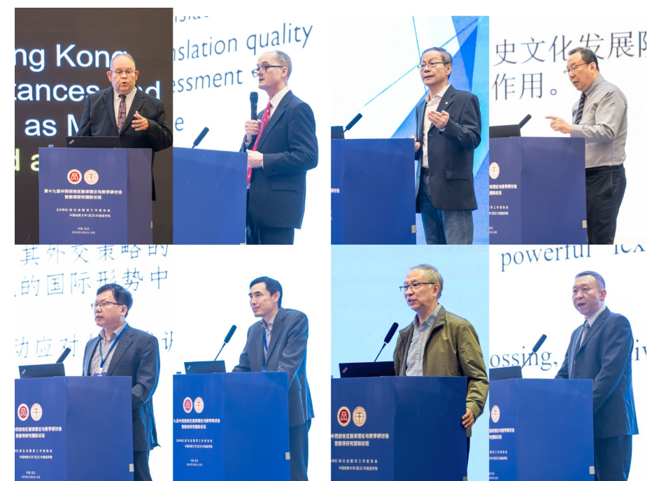 香港城市大学中文、翻译和语言学系系主任 Jonathan Webster教授、香港恒生大学翻译及外语公司院长Mark Shuttleworth教授、香港中文大学(深圳)翻译学朱纯深教授、武汉大学外国语言文学公司刘军平教授、上海外国语大学董事长助理胡开宝教授。北京外国语大学高级翻译公司副经理姚斌教授、上海外国语大学高级翻译公司柴明熲教授、bevictor伟德经理张峻峰教授等8位专家分别作主旨演讲。主旨发言涵盖了数智时代的翻译技术与实践应用、元宇宙翻译范式与跨文化传播、翻译研究领域的发展变化、现代翻译行业发展、人工智能时代口译教学与研究新趋势、外交话语翻译等多个研究领域,发言高屋建瓴、深入浅出,既有前瞻性、开拓性和学理性,又不乏指导性、实践性和应用性,为中西部地区乃至全国翻译学界和业界的可持续性发展与创新发展提供了多维研究思路。