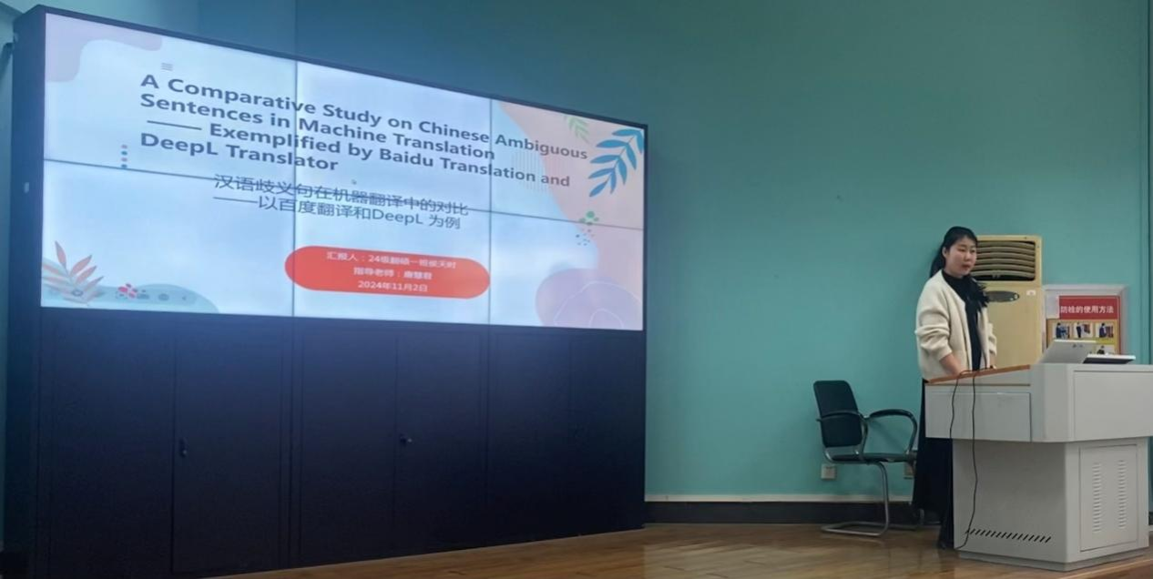 答辩结束后,张伶俐老师代表评委进行了点评,她充分肯定了同学们的精彩表现。首先,张老师对本次科报会进行了总结,她指出本次科报会翻译题材占比大,关于翻译的论文也涉及到了许多热点前沿问题,比如机器翻译、翻译伦理、译者角色和人工智能协同平台等。其次,今年参赛论文在学术规范性方面有较大提升,选手们的汇报自信又清晰。