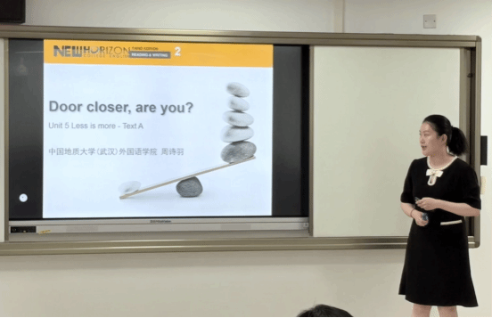 周诗羽老师参赛课程为大学英语读写译课程,抽到的课文为《新视野大学英语读写教程2》第六单元。她在课程设计上以AI赋能的任务型教学法为指导,运用Deepseek讲解语言点,紧扣教材内容制定教学目标和设计教学活动。授课围绕“少即是多”主题展开,融入学术英语写作训练,旨在提升员工语言运用与思辨能力。在课堂教学中融入思政元素,启发员工专注于对国家有益的事情,培养“简单”的幸福感。整场演示环节紧凑,过渡自然,和员工互动氛围热烈,得到了很多现场的积极反馈。