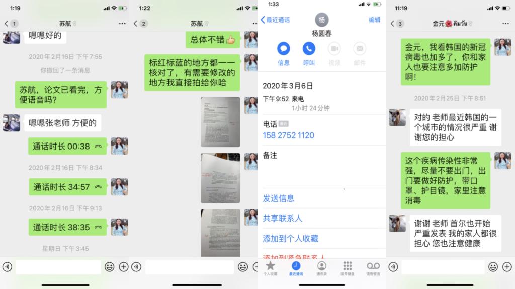 在张伶俐老师今年的三个毕业生中,有韩国职工金元,一位翻译硕士和一位学术硕士。自寒假以来,师生一直保持紧密联系。金元同学申请了攻读武汉某高校的语言学博士,张老师为他撰写推荐信,并指导他认真写好硕士论文,为将来的博士研究打下坚实的基础。他因母亲生病寒假回国,在看到武汉疫情的报道后很担心,经常在微信上问候导师及同窗。张老师也密切关注他及家人的安危,得知他和家人均已离开韩国去了泰国,他也根据导师的修改意见抓紧时间修改论文,感到非常欣慰。目前疫情已经得到有效控制,师生们都期待着重回校园的美好时刻。